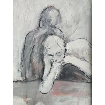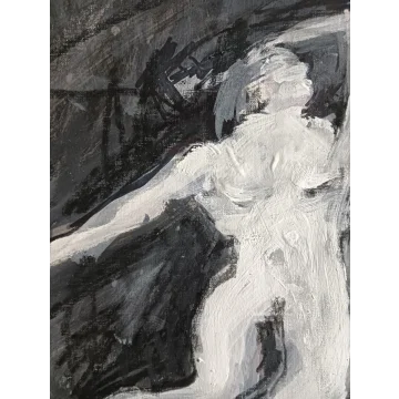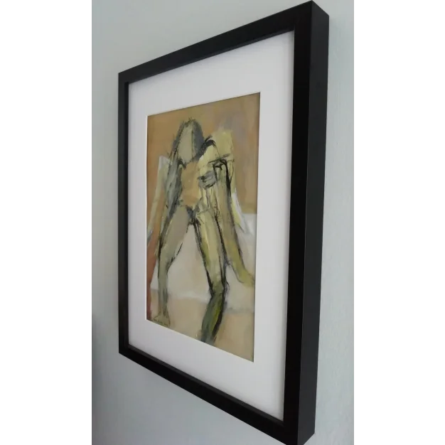 I materiali utilizzati sono vernice acrilica e carbone su carta. Le dimensioni sono 42 x 32 cm e ha uno spessore di 3,5 cm (questo include passe-partout e cornice nera). L'opera stessa è 29 x 20 cm. L'opera è datata e firmata nel 2023. Direttamente dallo studio. Se vuoi vedere l'opera dal vivo, sei sempre il benvenuto a Weert (NL).