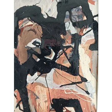 Dit ingelijst schilderij is geschilderd met acryl verf, potlood, stift en houtskool op aquarel papier. De afmeting is 32 x 42 cm en 3,5 cm dik (dit is inclusief passepartout en zwarte lijst). Het werk zelf is 20 x 29 cm. Gedateerd en gesigneerd in 2017. Rechtstreeks uit het atelier. Wil je het werk life zien, dan ben je altijd van harte welkom in Weert (NL).